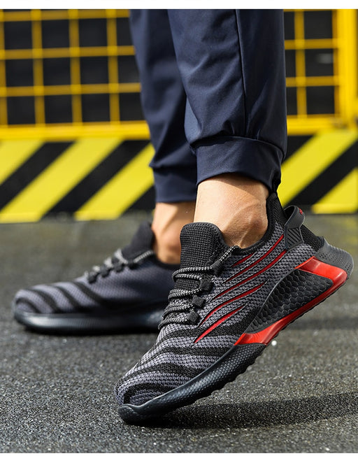 Baskets de Sécurité PULSE RED - Chaussures de Travail S3 Ultra-Légères en Tissu Respirant [Gris & Rouge]