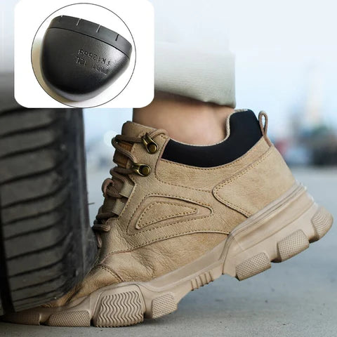 Bottines de Sécurité HYPERION Camel - Chaussures de Travail S3 sans Lacets [Look Baroudeur & Cuir Indestructible]